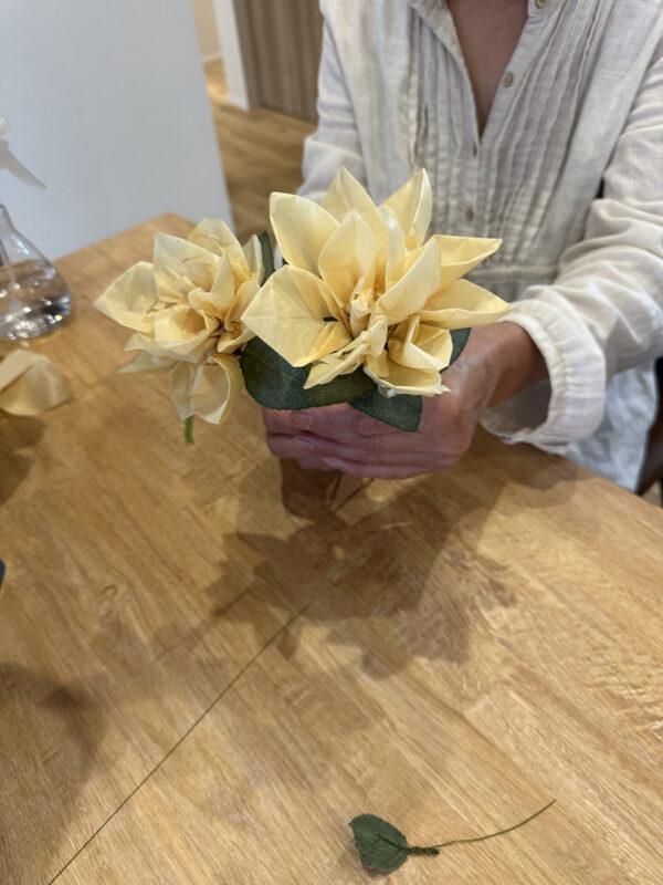 少しずつ花びらを重ね、立派なお花を完成させました。