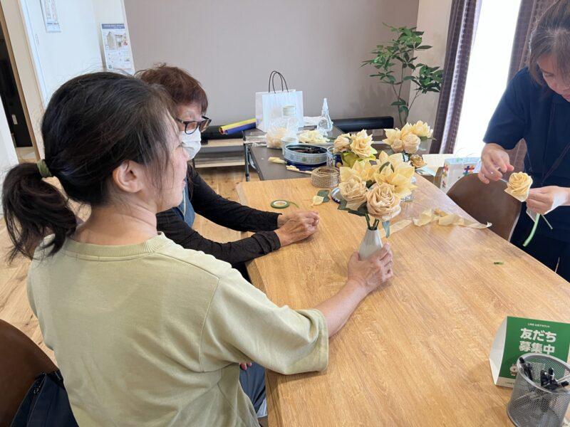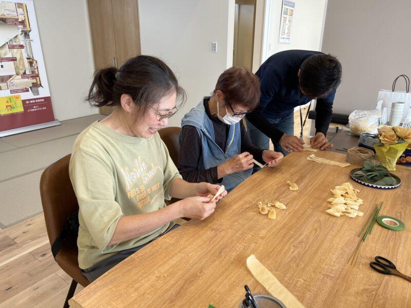「このくらい丸めたほうがきれいかも」「もう一枚足してみよう」など、参加者の皆さんの会話も弾み、和やかな雰囲気に包まれました。