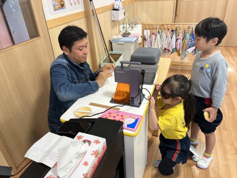 レーザー加工の様子に興味津々👀✨普段なかなか見られない体験です!